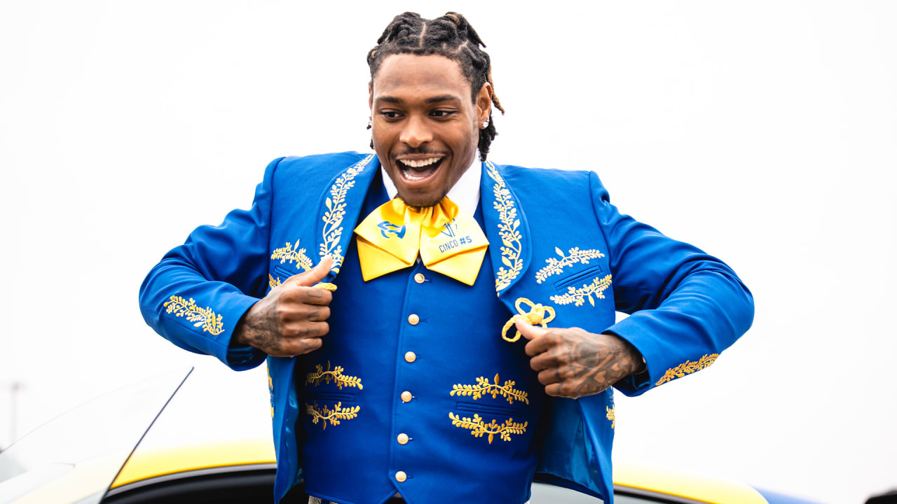 He was sporting what looked to be a blue and gold mariachi outfit and. Matthew Staffords pre-game outfit for the Super Bowl was the exact opposite of Joe Burrows. NFL player Jalen Ramsey sure knows how to make an entrance as he arrives for a game matching his outfit to his car a Porsche Taycan.