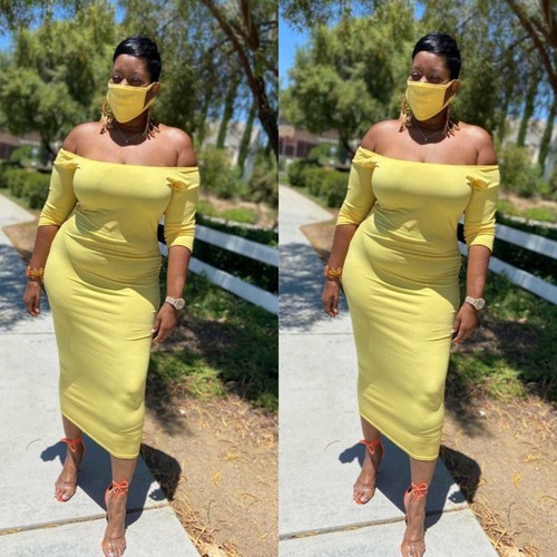 Women Plus Size Dress Yellow Bodycon Off Shoulder Midi Dress With Mask Size 1x Ebay